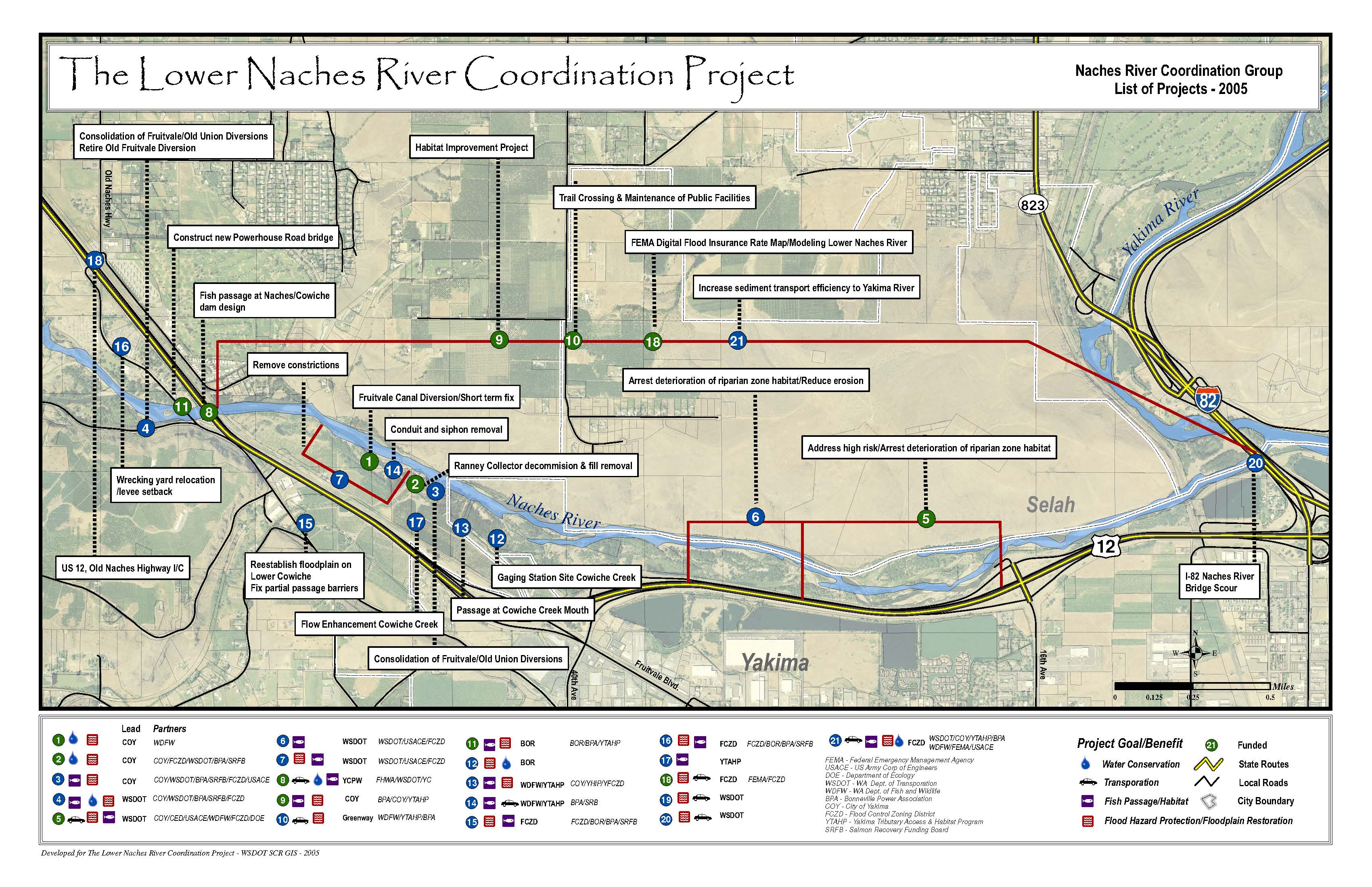 The Washington Department of Transportation, Yakima County and the City of Yakima came together in 2004 with the desire to develop the Lower Naches River Coordination Partnership as a result of initiatives identified in the Upper Yakima River Comprehensive Flood Hazard Management Plan (CFHMP).